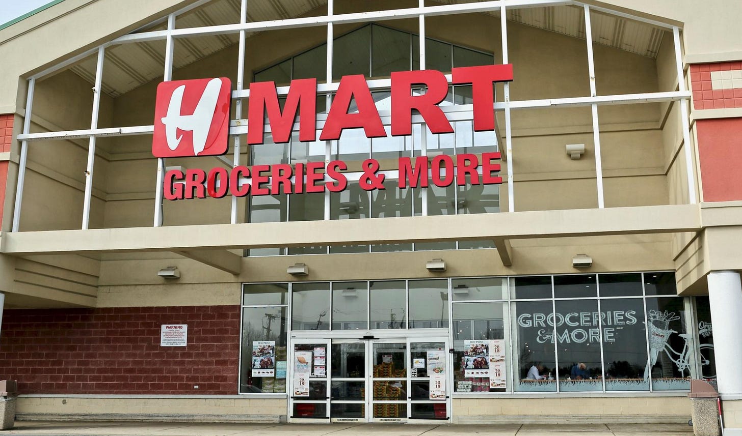One of the chapters of the dissertation is about H Mart, the Korean/Asian store that is having a bit of a cultural moment through at the very least (or most?) Michelle Zauner’s memoir and soon-to-be movie, Crying in H Mart.